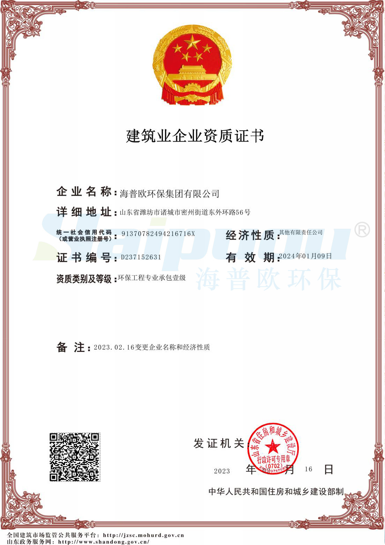 環(huán)保工程一級(jí)資質(zhì)