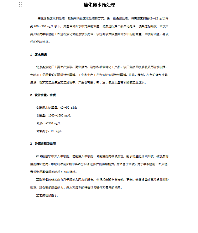 焦化廢水預(yù)處理工藝流程