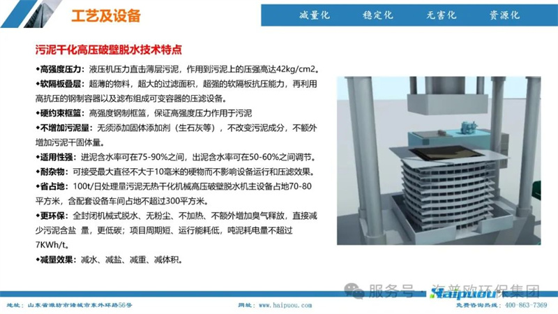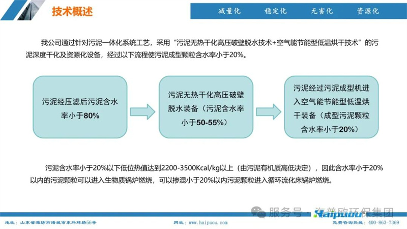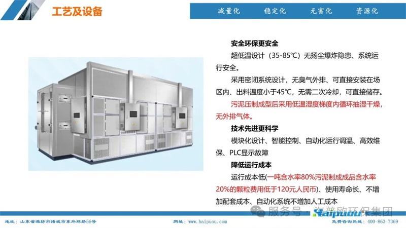 海普歐環(huán)保的核心技術——污泥深度干化及資源化設備,采用了“污泥無熱干化高壓破壁脫水技術+空氣能節(jié)能型低溫烘干技術”。這一技術組合能夠將含水率≤55%的物料烘干至含水率20%以下,為污泥的后續(xù)資源化利用提供了堅實的技術支撐。其中,污泥無熱干化高壓破壁脫水技術通過自主研發(fā)的高壓破壁泵,在污泥輸送過程中完成壓力破壁,破壞污泥中微生物細胞的細胞膜,使內部小分子滲出變?yōu)橥獠克黾游勰嗟牧鲃有,便于脫水。而空氣能?jié)能型低溫烘干技術則利用低溫蒸發(fā)熱泵原理,將濕熱空氣降溫脫濕,同時冷媒吸收水蒸氣的凝結熱,通過壓縮機聚集后再由冷凝器加熱脫濕后的空氣,實現熱能的循環(huán)利用,具有節(jié)能環(huán)保、安全高效、智慧化程度高等特點