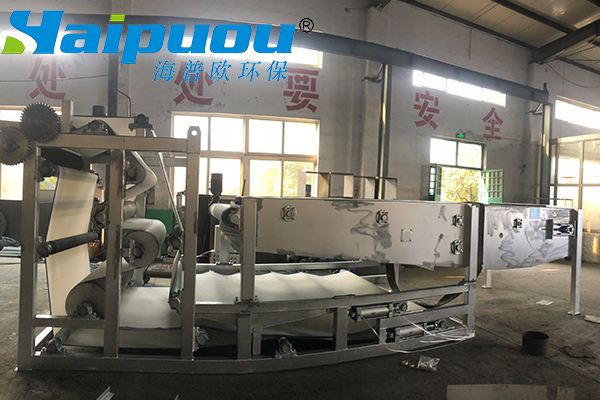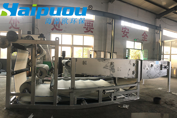 2、重力脫水段長(zhǎng),第一與第二重力脫水段總長(zhǎng)5m多,使污泥在壓榨前充分脫水失去流動(dòng)性。同時(shí),重力脫水段還設(shè)置反轉(zhuǎn)等特殊機(jī)構(gòu),經(jīng)“楔”形、“S”形壓榨等作用使污泥濾餅獲得低的含水量。