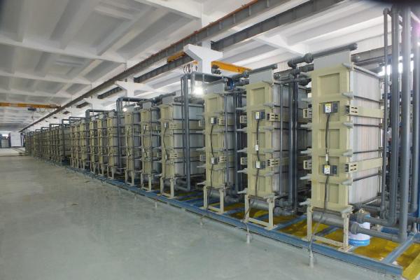 在電滲析過程中,離子交換膜不像離子交換樹脂那樣與水溶液中的某種離子發(fā)生交換,而只是對不同電性的離子起到選擇性透過作用,即離子交換膜不需再生。電滲析工藝的電極和膜組成的隔室稱為極室,其中發(fā)生的電化學(xué)反應(yīng)與普通的電極反應(yīng)相同。陽極室內(nèi)發(fā)生氧化反應(yīng),陽極水呈酸性,陽極本身容易被腐蝕。陰極室內(nèi)發(fā)生還原反應(yīng),陰極水呈堿性,陰極上容易結(jié)垢。